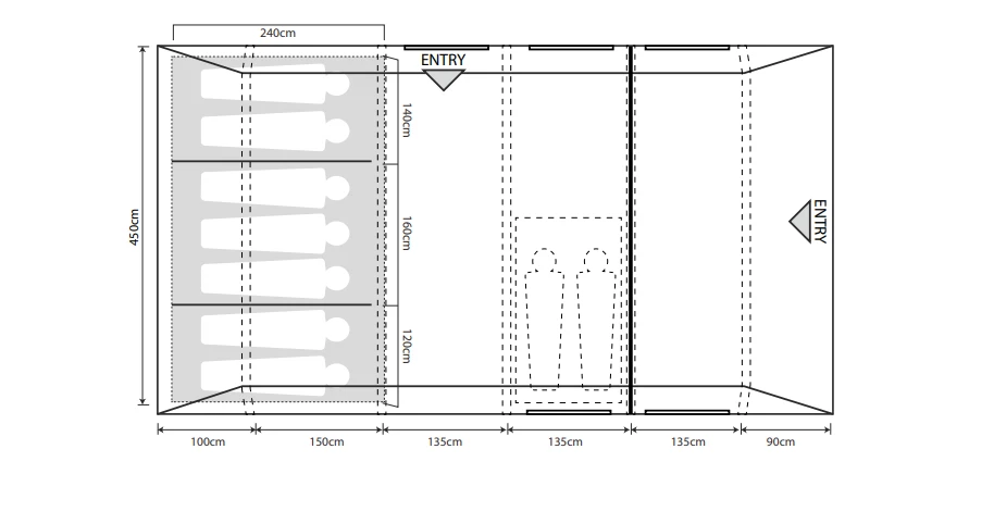 - Darkened twilight micro polyester 7 person bedrooms with 2/3/2 dividers