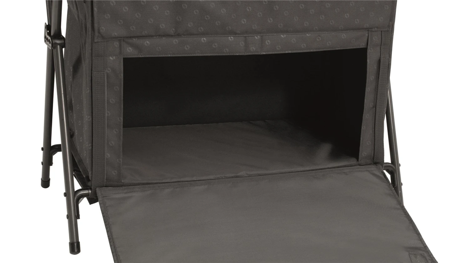 The versatile, stable storage units of the Outwell Cupboards and Wardrobes with magnet doors are quick and easy to set up and keep clothes and equipment clean and tidy. The doors are formed with easily assembled fibreglass frames and secured shut with sewn-in magnets for noise-free opening and closing.Â