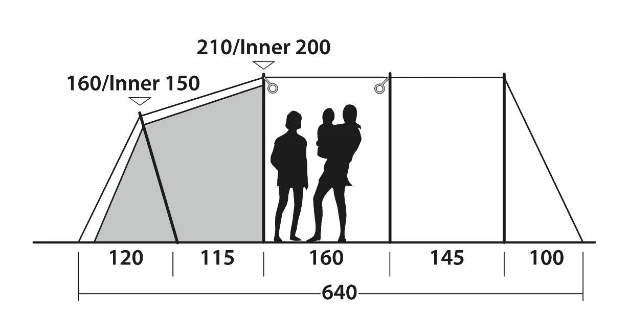 Sleeping six in three Premier Bedrooms with Dark Inners and Outwell Quick & Quiet Inner Doors, Norwood 6 offers versatile space in three zones, ideal for active campers seeking flexible tent living. The wide front of the light-filled design, with steep sides and front for maximum usable space, the Outwell HookTrack System, Rear Ventilation System, D-door and side door ensure practical camping comfort.