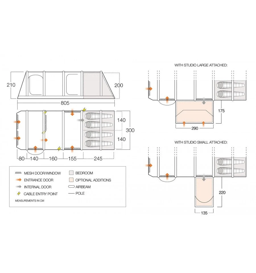 - Studio Addition Compatible – The side panels of the tent have a built in zip to attach optional side studio to expand your tent’s living space or add an extra sleeping area